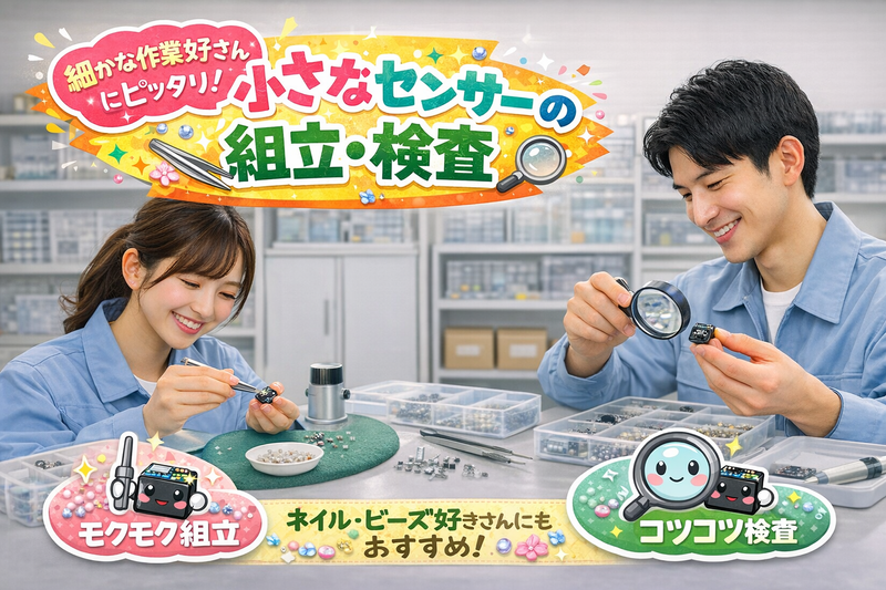 職種/仕事内容 | 仕事内容 手のひらサイズの小物センサー組立、検査のお仕事です 座り作業で、コツコツもくもくと作業するのが好きな方必見です! 未経験でも大丈夫なのでご安心ください。 空調完備のキレイな職場です。 食堂がカフェテラスみたいです。 |