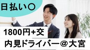 インフォメーション *お部屋探しCAFEといえばここ!*どんどん成長中*不動産仲介事業会社 運転好きな方も歓迎! お部屋の内見時のご案内&カンタン事務! ≪急募!≫ 今回は、不動産仲介事業会社でお車の運転&事務サポートをお任せします! 内見をご希望のお客様を、対象の物件にご案内したり、写真撮影や採寸などをしていただきます! 空いている時間は部内のサポート事務をお任せ! 【大宮エリア×高時給】で、お近くにお住まいの方も必見! 少しでも気になった方、お早めのご応募お待ちしております! *レゾナゲートはご来社不要!WEB登録可能です!給与日払い制度「Res給」&週払い制度「前給」あり!スマホでできちゃう無料PC講座も多数実施中* アピールポイント 株式会社レゾナゲートの求人を見ていただきありがとうございます! ◆当社の特徴1 WEBで完結・来社不要! ◆当社の特徴2 高水準・高時給のお給料&待遇! ◆当社の特徴3 最短翌日入金! 日払い制度「Res給」・週払い制度「前給」あり! ◆当社の特徴4 あなたもご家族も安心!健診サポート! 株式会社レゾナゲートでは 一般事務やデータ入力のお仕事だけでなく コールセンターでのテレフォンオペレーターや WEBディレクター、デザイン制作などクリエイティブ系のお仕事まで幅広くご紹介ができます! 「週2~、週3~で働きたいけどどうだろう・・」 「アルバイトやパートの経験しかないから不安・・・」 「ブランクあるけどどうだろう・・・」 ぜ~~んぶお気になさらず! あなたに合ったお仕事をご紹介します! ハローワークでお仕事をお探し中の方も こんな仕事ないかな?という方も お気軽にお問い合わせください!