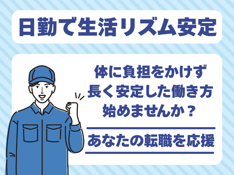 職種/仕事内容 | 仕事内容 ■夜勤なし/日勤のみ ■清水港 ⇔静岡市・焼津市・富士市の近距離中心 ■手積み・手降ろしなし ■日帰り運行のみ ■月収33万円以上可 ――――――――――――――――――― 【仕事内容】 大型ダンプで穀物・原料を運搬 (清水港→静岡市・焼津市・富士市など) ・固定ルート中心 ・県外配送あり (愛知・茨城方面/月2~3回程度) ・泊まり・長距離なし/すべて日帰り ――――――――――――――――――― 【働き方のメリット】 ・6:00出社→14:00退社など早上がりあり ・日祝休み ・運転業務に集中できる環境 「大型免許を活かしたい」 「長距離は避けたい」方へ。 無理のない近距離配送で安定して働けます。 まずは電話での問い合わせだけでも歓迎。 ☎ 054-270-5805(採用担当まで) ※電話応募なら個人情報等の入力作業なし※ ――――――――――――――――――― |