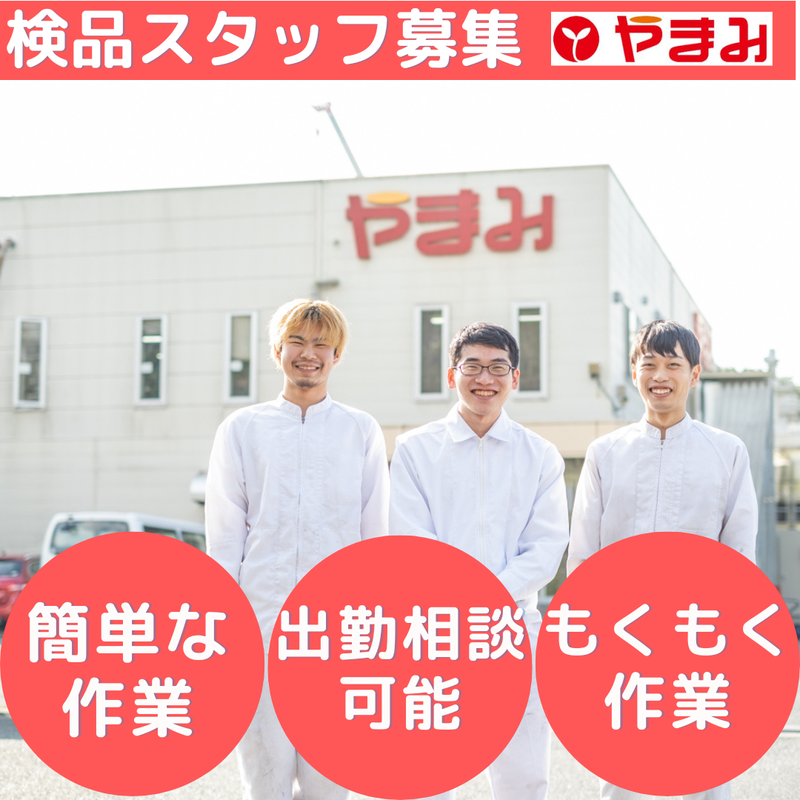 職種/仕事内容 | 仕事内容 お豆腐や関連食品の製造工場で、製品の検品作業をお任せします。 丁寧な研修とマニュアルをご用意しています。 また、適性に応じてあなたにあったお仕事をご案内いたしますので、 仕事内容や勤務時間などお気軽にご相談ください。 ★【フルタイム勤務大歓迎】★ -------------------- ⭐働きやすさのそのワケは・・・・ -------------------- ✅ 未経験歓迎:特別なスキルや経験は不要!丁寧に教えます ✅ 週3日〜OK:勤務日数や時間は相談可能。扶養内勤務もOK ✅ 安定企業で安心:豆腐業界で唯一の東証上場企業 ✅ 勤務時間相談可:お子さんや家庭の都合などお気軽にご相談ください! ✅ 入社祝金あり:アルバイト・パートでも5万円もらえます! (週30時間以上勤務を3カ月間継続) -------------------- このように働きやすい条件が充実✨ アナタもぜひ挑戦してみませんか♪ -------------------- 【具体的には】 ・ラインで流れてくる製品の目視チェック ・不良品の仕分け ・出荷前の最終確認 ・製品のラベルやパッケージの確認 など 検品作業のほかにも、当社には たくさんの業務がありますので、 この仕事が向いていない...や 他の仕事に興味があるなどの場合は、 適性に合ったお仕事をご案内いたしますので ご安心ください! -------------------- 【よくあるご質問(Q&A)】 Q. 検品の仕事が初めてでも大丈夫ですか? A. はい、まったく問題ありません! これまでに事務や販売、接客などの経験がある方も多数活躍中です。 特別な資格や経験は不要で、未経験からスタートしたスタッフが多数在籍しています。 丁寧なサポート体制があるので、安心してご応募ください。 Q. 勤務時間はどのように決まりますか?相談できますか? A. 勤務時間はご希望に応じて柔軟に調整可能です。 たとえば… ・子育て中の方 →「9:00〜13:30」でお迎えに間に合うように ・Wワーク希望の方 →「8:00〜12:00」で午後の仕事と両立 ・フルタイム希望の方 →「8:00〜15:00」でしっかり勤務 ・など、ライフスタイルに合わせて働けます。お気軽にご相談ください! -------------------- 【社員インタビュー】 <30代・女性/子育て中・未経験スタート> 「子どもが小学生になったタイミングで、 午前中だけ働ける仕事を探していました。 やまみでは9:30〜14:00の時間帯で働けるので、 子どものお迎えにも間に合いますし、 急な学校行事にも柔軟に対応してもらえます。 清掃の仕事は初めてでしたが、丁寧に教えてもらえて安心でした!」 <40代・男性/Wワーク希望> 「午後から別の仕事があるので、午前中だけ働ける職場を探していました。 やまみでは勤務時間の相談ができるので、8:00〜12:00で働いています。 体を動かす仕事なので健康にも良く、Wワークでも無理なく続けられています。」 -------------------- 【やまみの魅力とは?】 ・安定した食品業界での上場企業 ・未経験でも安心して働ける環境 ・地域密着で長く働ける職場 ・清掃業務で社会貢献を実感できる 【やまみをひと言でいうと?】 ・業界を代表する豆腐メーカー。 ・営業としても働きやすい企業。 ・家庭との時間を大切にできる職場。 ・上場企業として安定性がある。 ・明るく自由な社風が魅力の職場。 |