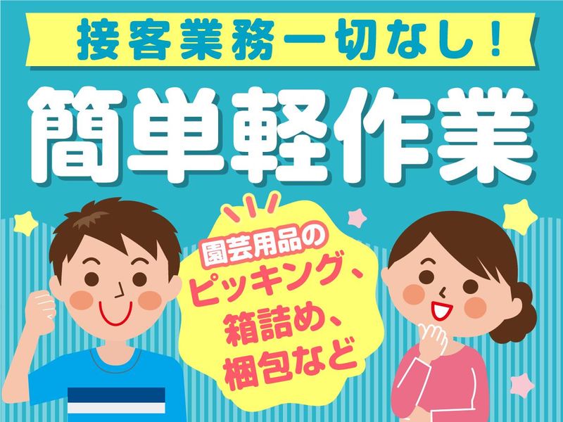 職種/仕事内容 | 仕事内容 \\ 3月中旬から6/15までの短期募集 // 月・火・木のいずれか1日含む週3日~OK! 【選べる】9:30~17:00/9:30~16:00 人見知りでも安心のコツモク作業!接客なし 特別なスキルや経験は必要ありません! ++----------------++ 【仕事内容】 *園芸用品のピッキング *箱詰・梱包 などの構内作業全般 [ 運搬は台車を使用 ] 重たい物を運ぶ作業はないので、安心! ※フォークリフト免許をお持ちの方は、 フォークリフトでの運搬もお任せします! ++----------------++ 【株式会社 こうじや】 <創業50年>園芸資材の総合商社  ̄ ̄ ̄ ̄ ̄ ̄ ̄ ̄ ̄ ̄ ̄ ̄ ̄ ̄ ̄ 土や肥料をメーカーから仕入れ、 お得意様に販売するのが当社の役割です! 取引先は北海道~九州までの日本各地。 創業50年、関東の園芸資材を扱う 商社の中で圧倒的なシェアを誇っています。 [会社HP]http://www.koujiya.co.jp/ |