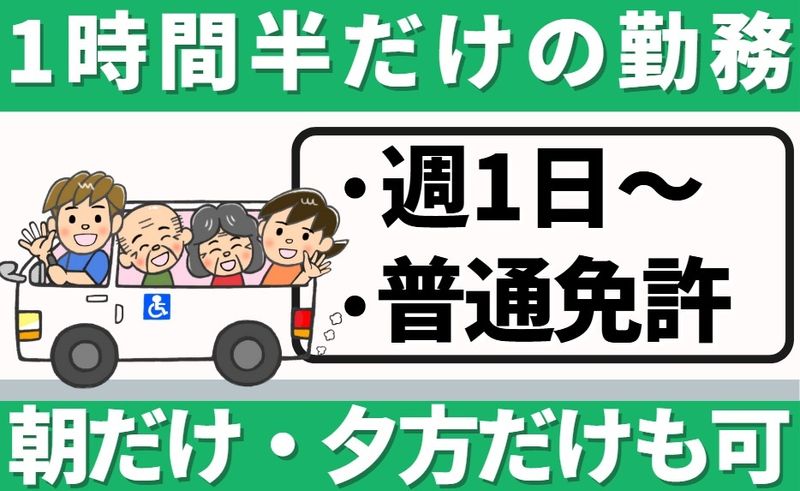 職種/仕事内容 | 仕事内容 海老名市社家にあるデイサービスセンター 「デイサービスセンター いきいき」で 送迎ドライバーを募集! 【オススメポイント】 ・週1日~扶養内勤務もOK ・普通自動車免許があればOK (ワンボックス車での送迎) ・50代、60代の送迎スタッフも活躍中 ・勤務時間は柔軟に対応(朝だけ、夕方だけも可) 【仕事内容】 自宅と施設間の送迎業務になります。 送迎ドライバーと言っても運転だけではなく、 乗降のや歩行の補助もお願いいたします。 添乗員も一緒に同行するので「補助は不安だな」 と思う方もご安心ください。 【普通自動車免許があればOK】 送迎にはワンボックスカーを使用するため、 「大きい車の運転は不安だな」と思う方も 安心してください。 普段から乗用車を運転している方であれば 問題なく運転できるかと思います。 【勤務日、時間は柔軟に対応します】 週1日~勤務可能なのでWワークもOKです。 「稼ぎたい」という理由で週4日で働いている方から 「送迎ドライバーの仕事がすきだから」 という理由で週1日で体力を考慮しながら 働いている方まで様々です。 【片道3、40分程度のため、体の負担少なめ】 運転時間・距離は短いため、中高年や定年後のシニアの 方も無理なくアルバイト、パート勤務できます。 往復でも1時間30程度のため隙間時間に 少しだけ働きたい方も歓迎! 【中高年・シニアの方も活躍中】 ・40代・50代・60代の男女活躍中! ・シニアアルバイトとして年金受給中の方も活躍中! ・主婦パート/主夫パート、アルバイト、フリーターや 正社員を定年退職後の送迎ドライバーデビューも歓迎! 【こんな経験ある方は即戦力で活躍できます】 ・観光バス運転手や路線バス運転手(パート、アルバイト) ・タクシードライバー(パート、アルバイト) ・介護施設の送迎ドライバー(パート、アルバイト) ・スイミングスクールバス運転手や幼稚園バス運転手(パート、アルバイト) ・トラックドライバー 【当施設について】 「社家駅」から徒歩12分にある 「動ける体づくり」をテーマにしたデイサービスです。 50代・60代・70代の中高年/シニア世代の スタッフが多く在籍しています。 シフト調整はお互いが助け合いながら 良好な職場環境を作ることを心掛けています。 【応募を検討している皆様へ】 応募のご検討ありがとうございます。 募集内容をご覧になって ご興味をもっていただけましたら お気軽にお問合せください。 私たちも求職者様が安心して 一緒に働いていただけることを 楽しみにしています。 |