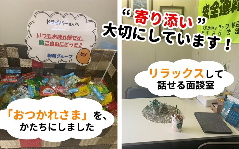 対象となる方 | 求めている人材 【必須】 要普通免許(AT限定可) 【こんな方もぜひ】 ・未経験OK ・ブランクOK ・異業種転職OK ・体に無理なく働ける仕事を探している方 ・配送経験ゼロでも始められる仕事を探している方 ・車の運転が好きな方・運転に慣れている方 ・自分のペースで働きたい方(直行直帰OK・柔軟なスタイル) ・札幌市内で安定した仕事を探している方(近距離配送) ・配送未経験でもOKな仕事を探している方 ・直行直帰OK・自由な働き方ができる職場を探している方 ・30代・40代・50代の転職を考えている方 ・元事務職・飲食・アパレル・販売など、異業種からのチャレンジをしたい方 |