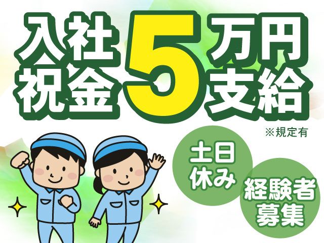 職種/仕事内容 | 仕事内容 <オススメポイント> ・入社祝い金5万円支給※規定あり ・人気の土日休みのお仕事 ・年間休日120日でプライベート充実! ・20代~40代の男女が活躍中 ・稼げる2交替勤務 ・土日休み&長期休暇完備 <具体的なお仕事内容> 自動車部品の製造、組立、梱包作業をお願いします。 作業手順をもとに自動車用部品を 専用設備を使用して組み立てていく作業になります。 職場見学OK お気軽にお問い合わせください <安心のサポート体制> 最初は先輩スタッフがつきっきりで丁寧に教えてくれますので、ご安心ください。 <こんな方にもおすすめ> 働きざかりの方、大歓迎! 2交替勤務だから、月収22.0万としっかり稼げます。 また経験不問から始められる未経験者歓迎のお仕事だから、 技術を習得したい方にもおすすめ。 土日休みに長期休暇もあるので、家族との時間や プライベートでの旅行なども充実できます。 |