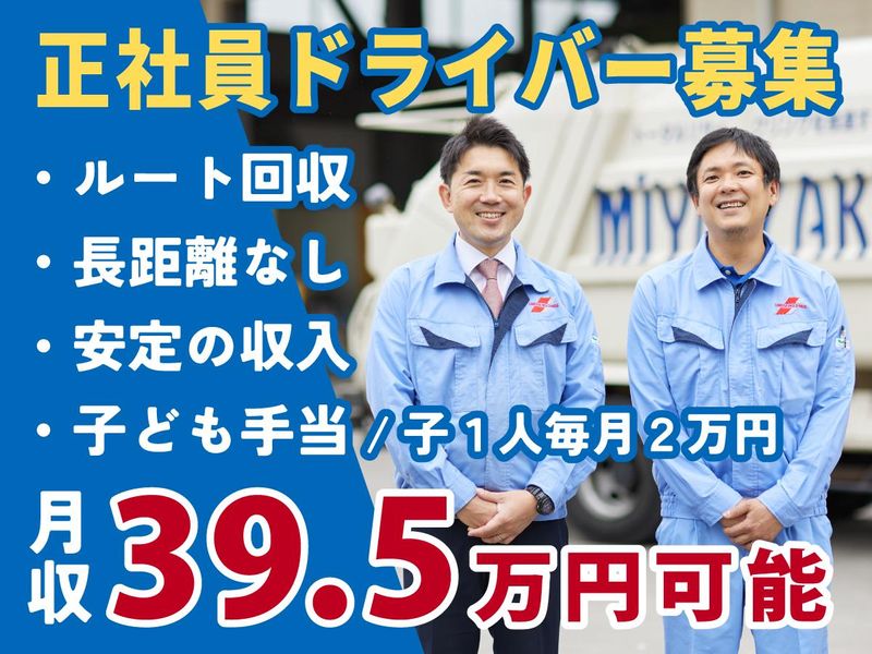 職種/仕事内容 | 仕事内容 定年まで安定して稼ぎ続けたい方必見! ドライバー経験を当社で生かしませんか? ライフステージに合わせて働き方が変更できます 残業多めで稼げるルートがいい 残業ナシで無理せず続けたい 日勤のみで安定して働きたい 定年後も雇用してもらいたい そんな希望を叶えられる環境を用意しました! 株式会社宮崎はリサイクルのリーディングカンパニーとして全国に拠点を置いています お客様は市区町村などの公的機関から企業・工場・スーパーや商業施設など様々 「MIYAZAKI」のロゴの入った車両を見かけたことがある方も多いのではないでしょうか 毎日、たくさんの古紙が捨てられています しかし、それは「ゴミ」ではありません 私たちはその資源を回収し、新しい紙製品へと生まれ変わらせています 限りある資源を守り、子どもたちの未来を育むため、 循環型社会・地域社会を守り続けるとても大切な仕事です 具体的には… リサイクル用資源(段ボール、新聞、雑誌など)の回収作業です 基本は一人で指定の回収先へまわります 基本は午前と午後の2便です 出勤時にその日のルートを共有します 準備ができ次第回収に向かいます お昼休憩前後で拠点にもどり、回収分を下ろします 休憩後に午後のルートへ出発、おおよそ14時(または15時)くらいには2回目の回収も終わり構内作業に切り替えます ※リフト免許がある方は、回収後に構内でのフォークリフト作業をお願いします リフト免許がなくても問題ありません 資格取得支援制度もあります 車両は2t・4t・7t・パッカー車など様々なタイプの車両があります 新型車両も随時導入しており、環境に配慮しつつ作業員の負担も少なくしています バックモニターやカーナビ付き車両を増やしています 【研修制度や福利厚生も充実させています】 働き方改革の一環として完全週休2日制をスタート 年間休日は2025年は122日になりました 土日だけや平日夕方のみのアルバイトも増やし、社員に負担がかかりすぎないように調整しています 子どもが小さいので残業を少なめにしたい 学校行事のため、今月は○日○日を休みにしてほしい など、残業時間の有無も含め希望も考慮し、ルートを決定しています 現場の声も積極的に取り入れ、会社に交渉して定年まで安心して働いてもらえるような待遇や環境の用意、 所長へのキャリアステージの用意など、様々な要素をとりいれ定着率向上にも努めています 社会に、お客様に、働くスタッフやその家族からも必要とされる企業としてますます進化していきます 是非、当社の一員になってください |