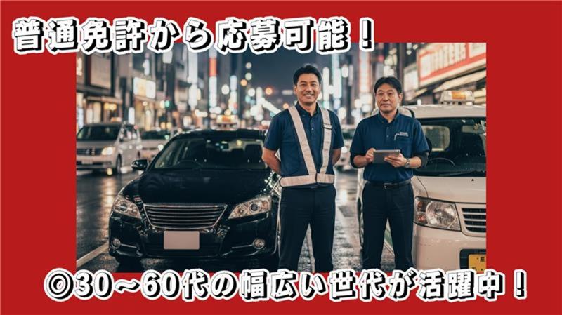 アピールポイント: 【運転するのは「社用車」だけ!2人1組で安心のシンプルワーク】 お客様の車を運転するスタッフの後ろを専用車で追走する(付いていく)だけの業務からスタート可能です。 ■普通免許(1種)でOK!シンプルワーク 運転するのは「社用車」だけ。お客様の車(外車や高級車など)を運転することはないので、心理的な負担もありません! ■「日給+歩合」で安定して稼げる 固定日給(7,089円~)があるから安心。さらに、頑張った分だけ「インセンティブ」が上乗せされるので、やりがいも十分です。 ■回転率バツグン!効率よく給与アップ リピーターのお客様が多く、依頼が途切れないのが強み。待機時間が少ないので、効率的にインセンティブを積み上げられます。 ■2人1組のチーム制だから未経験でも安心 常に2種免許を持つベテランの先輩と一緒です。道案内や接客のコツもすぐ隣で学べるため、未経験からスタートしたスタッフが多数活躍中! ■ライフスタイルに合わせた柔軟な働き方 「週2日〜」のWワークも、「週5日」のガッツリ勤務も大歓迎!「日払い(規定あり)」で、急な出費がある時も助かります。 ■二種免許保持者は「即」客車ドライバーへ! 一種スタッフを従え、メインドライバーとして活躍してください。もちろん、その分インセンティブや手当を厚く設定しています。 ◎30代~60代と幅広い年代の方が活躍中です!
