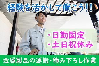職種/仕事内容 | 仕事内容 【長期安定♪3か月後に昇給あり!!】人気の日勤専属・土日祝休み♪でも残業多めで稼げます♪安定した給与で長期的に勤務できます!経験・資格を活かして働こう! <仕事内容> 大きな金属製品(柱や住宅用製品)のメッキ加工を行う工場でのお仕事です♪ 加工を行う前の製品や完成品をトラックへ積み込みする為に、クレーンやフォークリフトを使用して運搬したり、積み込み・積み下ろしを行う業務です! これまでの経験を活かして活躍していただけるお仕事です♪ 出来上がった製品はメッキがコーティングされキレイに光っています♪ 様々な施設などで使用されている状態になります。 研修体制もしっかりしているので未経験入社で活躍している先輩も大勢います★ 必要に応じて資格取得のサポートもございます! 立ち作業でのお仕事です。 重量物を扱う(15㎏以上)可能性がございます。 グループ作業となります。 《環境》 男性が多い職場です。 冷暖房完備です。 休憩室完備 アピールポイント <仕事内容> 大きな金属製品(柱や住宅用製品)のメッキ加工を行う工場でのお仕事です♪ 加工を行う前の製品や完成品をトラックへ積み込みする為に、クレーンやフォークリフトを使用して運搬したり、積み込み・積み下ろしを行う業務です! これまでの経験を活かして活躍していただけるお仕事です♪ 出来上がった製品はメッキがコーティングされキレイに光っています♪ 様々な施設などで使用されている状態になります。 研修体制もしっかりしているので未経験入社で活躍している先輩も大勢います★ 必要に応じて資格取得のサポートもございます! 立ち作業でのお仕事です。 重量物を扱う(15㎏以上)可能性がございます。 グループ作業となります。 《環境》 男性が多い職場です。 冷暖房完備です。 休憩室完備 \充実した福利厚生/ ◎社会保険・雇用保険完備 ◎有給休暇有(6ヶ月経過後、10日付与)※規定あり ◎残業手当 ◎交通費支給(規定内) ◎確定拠出年金制度 ◎週払い制度(週3回対応) ◎お友達推薦制度あり(規定有り) ※1名につき3万円~10万円臨時給与として支給 ◎車(マイカー)通勤可(無料駐車場あり) ◎制服貸与 ◎冷暖房完備 ◎食事持参可 ◎休憩室利用可 ◎福利厚生プログラム (宿泊、グルメ、ショッピングなど大幅割引が受けられる10万アイテムのメニューがあります。) |