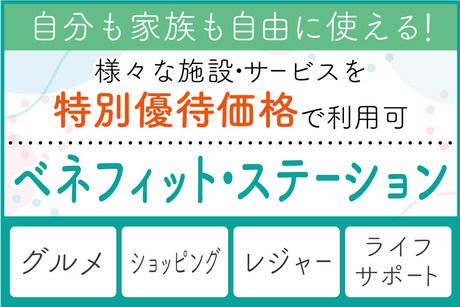 待遇・福利厚生 | 【保険制度】 雇用保険、労災保険、健康保険、厚生年金 【福利厚生】 待遇・福利厚生 【福利厚生】 ・社会保険完備 ・有給休暇 ・交通費全額支給 ・バイク、自転車通勤OK ・無料送迎バスあり ・髪型自由 ・空調完備 ・正社員登用制度あり(実績あり) ・敷地内全面禁煙 【その他福利厚生】 ・定期健康診断 ・教育訓練制度 ・子ども手当あり ・結婚、出産、入学祝い金あり ・退職金制度あり ※各々、社内規定に基づく 【ベネフィット・ステーションの利用が可能】 ベネフィット・ステーションとは、 様々なシーンでご利用いただける 総合型福利厚生サービスです。 映画鑑賞やホテルディナー、宿泊施設 などの余暇・レジャー関連をはじめ、 日常で使えるフィットネスや 育児・介護支援、ライフサポートなど 約140万件以上の幅広いメニューを お得な価格で利用できます。 <サービス例> ・全国40,000以上の宿泊施設 ・全国30,000店舗以上の飲食店 ・全国約7,700ヶ所のスポーツクラブ など スタッフさんはもちろん、ご家族の方もお好きなだけ利用できます。 |