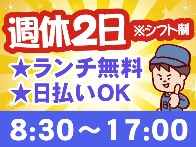 ランチ無料|未経験OK|見学あり|日払い週払いOK|日勤|週休2日シフト制|仕分け|もくもく作業