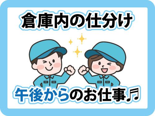職種/仕事内容 | 仕事内容 滝沢市にある倉庫内にて勤務いただく 仕分け作業スタッフを募集します。 出張面接OK!即日入社OK! 「お仕事内容」 リストを見ながら仕分け作業をおこなっていただきます。 難しい機械操作などは一切ありません! 20代~50代の男女共に活躍中! 仕分け作業が未経験の方もご安心ください! 先輩スタッフが丁寧にサポートいたします! 現場で活躍中のスタッフも 未経験スタートがほとんど! 分からない事は何でも聞ける 「風通しの良い職場」です。 <勤務時間について> 勤務時間は13:00~21:00! 午後からのお仕事なので、 朝がニガテな方にもピッタリ! あなたに合ったお仕事を選べます。 働き方やお仕事内容など、 どんな事でもご相談下さい! 少しでも興味を持たれた方、 他の仕事も気になる…!という方 まずはお気軽にお問い合わせ下さい。 |