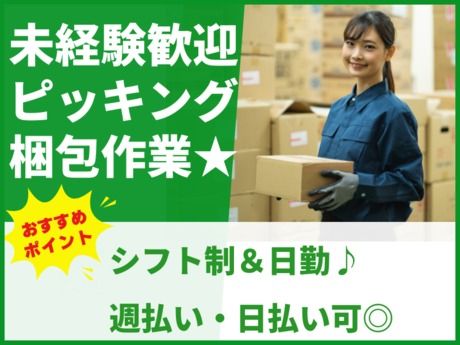 ★未経験OK◎マイカー通勤可!雑貨商品のピッキング・梱包♪シフト自由