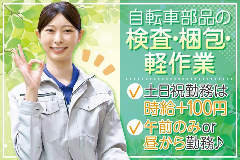 午前のみor昼から勤務★簡単作業◎土日祝勤務▶時給+100円