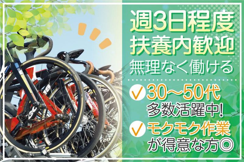 職種/仕事内容 | 仕事内容 < 空調完備×構内作業=定着率◎ > ✅お弁当無料など待遇も充実! ✅個人ロッカー有・車通勤可で働きやすい! ✅すぐ向かいに新工場! パート・アルバイトさん募集 ◎週3回程度 扶養内の方歓迎 ◎午前のみ or お昼から勤務できる方 【仕事内容】 構内にて研磨作業を終えた 自転車部品などの 軽作業・検査/検品・梱包作業をお任せします。 上記以外の他にも 少しだけタブレットPC入力もお願いします。  ̄ ̄ ̄ ̄ ̄ ̄ ̄ ̄ ̄ ̄ ̄ ̄ ̄ ̄ ̄ ̄ ̄ ̄ →未経験OK!30~50代中心に活躍中 丁寧に指導するので安心♪ →コツコツ・もくもく作業・ものづくりが 好きな方にピッタリ◎ 空調設備も整ってます◎ ☆定着率の高い職場環境です! 作業は集中してモクモクとやるので、 「仕事仲間との雑談が苦手…」 という方も、気を使わずに働けます。 あ、もちろん質問は大歓迎なので、 安心してくださいね!(笑) |