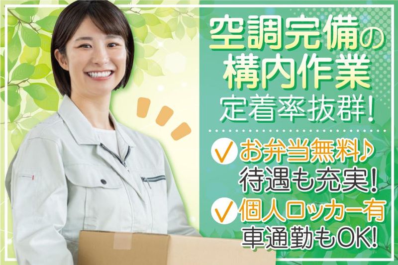 職場環境・雰囲気 | 職場環境 30~50代が多数活躍中。 定着率も抜群◎ 周りのスタッフと協力しながら作業を進めていきます! 喫煙所:喫煙所あり(屋外) 出入口に禁煙スペースあります |
