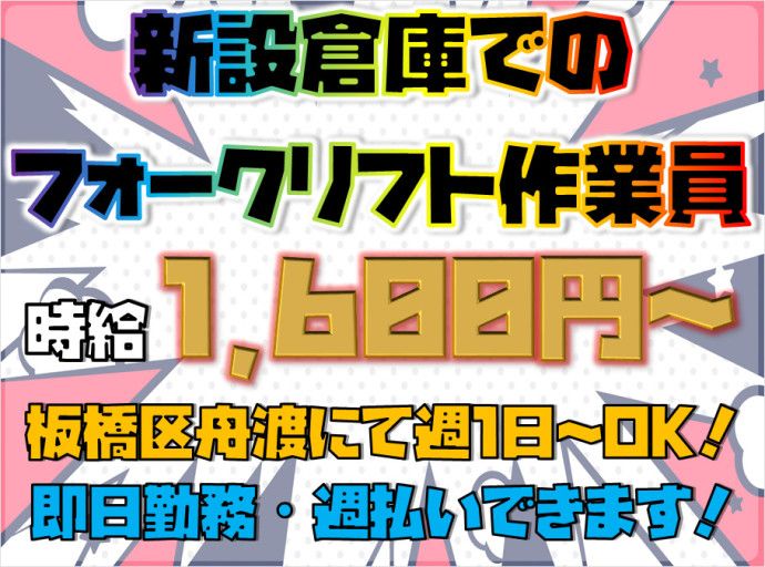 板橋区の最新物流倉庫でのフォークリフト入出庫作業!