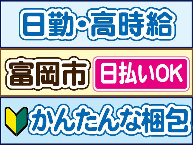 日勤・土日祝休み/社員食堂あり 履歴書不要・日払いOK 未経験OKの梱包作業