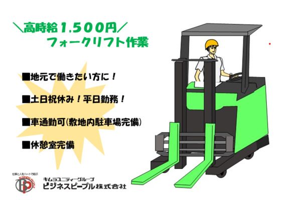 その他 | キャッチコピー \シューズ倉庫でフォークリフト作業!商品の入出庫作業!土日祝休み/ 入社時から高時給1500円!ブランクOK!男性スタッフ活躍中!乗車率高め↑ アピールポイント 嬉しいマイカー通勤OK! 土日祝休み・GWやお盆や年末年始休暇あり 職場見学ありで入社前に職場の雰囲気や作業風景もご確認可能です! 雇用形態 派遣社員 掲載企業名 ビジネスピープル株式会社 関西営業所 応募受付先電話番号 06-4950-4133 採用担当者名 採用担当 企業情報(備考) 企業名:ビジネスピープル株式会社 関西営業所 設立日:2002/04/15 事業内容:1.労働者派遣法に基づく人材派遣事業 2.職業安定法に基づく有料職業紹介の事業 3.コンピュータシステムによるデータ入力およびそれに伴う事務処理の受託 4.個人および企業における能力開発、人材育成に関する教育研修事業並びにコンサルタント 5.コンピュータソフトウエアの開発およびコンピュータシステムの企画および開発 6.電子機器、自動車部品、家庭電化品等各種製造会社(工場)の機械コントロール並びにライン出張業務 7.各種機会、器具、製品、商品などの梱包業務 8.工作機械部品、自動車部品、家庭用電気製品の組立、溶接、検査並びに加工請負 9.事務用物品の販売 10.前各号に関する一切の業務 売上:65,000万円 URL:http://www.bpnet.jp/company/ 【連絡先】 06-4950-4133(採用担当あて) *ご質問等お気軽にお問い合わせください。 *登録会はご自宅付近で対応可能です。 【当社について】 “人と企業の幸せな出会いを創りたい”という企業理念のもと、お客様の人財戦略を支援するとともに、スタッフ満足度向上を実現する人財コンサルティング企業を目指しております。様々な案件をご依頼いただいているため、皆様の希望にあったお仕事を紹介させていただきます。社会保険完備、交通費支給など、安心してお仕事していただけるよう、しっかりサポートさせていただきますのでご安心くださいませ。加入条件や、当社規定など、気になることがございましたらお気軽にお問合せください。もちろん面談の際は、改めて分かりやすくご説明いたします。たくさんの方にお会いできることを楽しみにしております! |