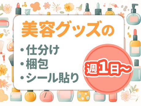 職種/仕事内容 | 仕事内容 美容グッズの仕分け・梱包・シール貼り >>会話少なめコツコツ軽作業! ――――――――――――――― 美容グッズを扱うお仕事♪ 重たいものはないので負担も少なめです◎ ■仕事内容  ̄ ̄ ̄ ̄ ̄ ・出荷先ごとに仕分け ・箱や袋に丁寧に詰める ・シールやラベルをペタッと貼る など やっていただくのはこれだけ!! 初めての方でも半日あれば覚えられます! それでもわからないことは先輩staffが 丁寧にサポートするので安心して下さいね♪ 少しでも気になったら お気軽にご応募ください★ ★☆ スポット・ド短期・単発OK ☆★ ●働き方は自由自在! ●スキマ時間や空いている日を有効活用できる! ●平日だけ、土日だけもOK! ●1日~OKのスポットワーク! ━━━━━━━ ★こんな方に★ ━━━━━━━ ■長期休暇に自由にお金を使いたい! ■週末の飲み会に向けてお金が欲しい ■会話少なめで簡単な仕事が欲しい など ★☆嬉しいメリットを教えてください!☆★ 【1】日払いOK 「急な出費のときに本当に助かる…」 「欲しいものがすぐに買えます♪」 「遊ぶ予定の前にサクッと稼いでます!」 【2】短期OK 「長期休みのときだけ働いてます!」 「次の仕事が決まるまでの"繋ぎ"で」 「季節限定のオシゴトだけ♪」 ★☆ スタッフの声 ☆★ 「家庭と両立して働けています。 子育てが落ち着いたらもう少し シフトを増やしてみようかな!」 「アルバイトをしていたけど 急にシフトに入れなくなって 困っていたときに応募しました!」 みなさん、学校・家庭・他のお仕事など と上手に両立しながら働いていますよ♪ |