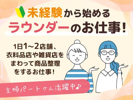 職種/仕事内容 | 仕事内容 \大西衣料で「ラウンダー」に挑戦しませんか?/ 大西衣料で、 あなたらしい働き方を見つけませんか? 「ラウンダーって何?」という方も大歓迎! まずは「ちょっと話を聞いてみたい」だけでもOKです◎ ◆お仕事内容 大西衣料の商品を扱う小売店さまを訪問して、 売り場づくりをサポートするお仕事です! 具体的には… 1日に1~2店舗を巡回し、 売り場の商品整理・在庫数の確認・ 品出しなどを行います。 出退勤や本社とのやりとりは、 電話やタブレットで簡単に管理できます。 慣れてくると、 「こうしたらもっと売れるかも?」 といったアイデアを活かして、 売り場づくりに貢献することもできます。 自分の工夫が形になる、やりがいのあるお仕事です! ◆1日の勤務イメージ 自宅出発(タブレットで出発時間を記録) 10:00 店舗到着(店着時間を記録) 品出し・整理整頓・清掃 値下げ・返品対応などの作業フォロー 作業日報作成 14:00 店舗作業終了(店出発時間を記録) 帰宅(帰宅時間を記録) ◆パートさん活躍中 週2日・1日4時間だけの短時間勤務! 平日のみ&曜日固定だから 予定も立てやすく 家事・育児・Wワークとの両立も◎ 「久しぶりの仕事復帰で、まずは短時間から」 そんな方も歓迎です! |