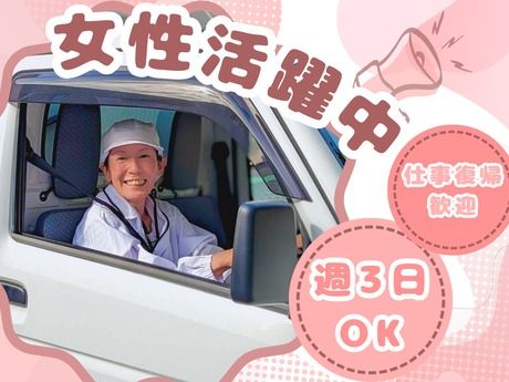 軽・ハイエースでの固定ルート配送&接客ナシ!/【週3日~OK・女性活躍中】同乗研修あり♪/14時までの勤務可能/扶養内・フルタイムなどシフト相談OK/子育て中・ブランクがある方も大歓迎◎