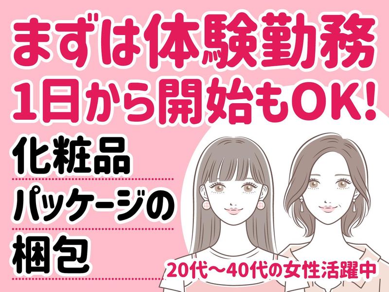 職種/仕事内容 | 仕事内容 パッケージなどを製作している印刷会社で、軽作業のお仕事です。 今回携わって頂くのは化粧品のパッケージ。 あなたが見慣れた製品のパッケージにも出会えるかもしれません。 いつも使っているものに関われるのって、ちょっと楽しくなりませんか? 【業務内容】 ・出来上がった製品を出荷用に梱包する作業 その他組立や検品作業もお手伝いをお願いします |