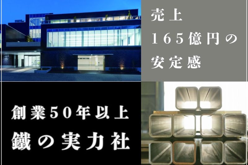 【アピールポイント】 【未来の街を支える仕事。】 ビル、橋、道路、工場――すべての基盤に 欠かせない鋼材を供給し、街の発展と暮らしの 安全を支える営業スタッフを募集中! ・年間休日110日+有休推進5日 ・嬉しい昇給や賞与制度も充実 ・長期連休や有給休暇もしっかり取得可 ・20代・30代スタッフ活躍中!