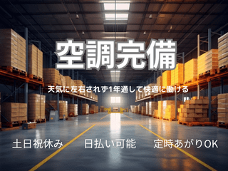 【年間休日120日以上 】・フォークリフト・男性活躍中・高時給・土日祝休み・長期休暇あり・日払い可・週払い可・交通費支給・空調完備・制服貸与・駐車場完備