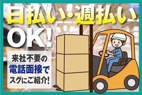 職種/仕事内容 | 仕事内容 ■最新システムを導入した倉庫でのリフト操作メインの軽作業 商品の移動や搬出入などで力作業が極力生じないようにするため 最新システムを導入した倉庫でのリフト操作をメインにピッキングなどの軽作業をお願いします。 ※リフト免許をお持ちでない方はピッキング作業が中心になり時給は1300円(初日から14日間は1800円)になります。 ◆丁寧さ、安全性重視!【フォークリフト作業】 フォークリフトを操作し、商品の荷卸し業務をお願いします。 倉庫内は広々しているので、 リフトの運転にブランクのある方や操作経験が少ない方も スグに感覚をつかんでもらえると思います。 日々多くの商品が搬出入されますので、リフト操作をお願いする機会も 操作をしている時間も比較的長くなると思います。 ■簡単すぎて驚く方が続出!【ピッキング作業】 倉庫内で指定されてた商品を探し、 バーコードリーダーでピッと読み取るだけ! 商品は日用品から小物家電までありますが、 番号ごとに整理されているので見つけ出すのもとっても簡単です。 一度やってみたらスグにコツをつかめると思います。 女性スタッフも多数活躍中です! ■リフトの操作が久しぶりの方も経験が浅い方も大歓迎! 今いるスタッフも多くが、他のお仕事から転職してきた方になります。 勤務開始直後は、その倉庫でのやり方に戸惑うことも多いと思いますが 一緒に働くスタッフがしっかりサポートするので安心して下さい。 ■来社&履歴書は不要です! 今なら来社&履歴書不要でお仕事のご案内が可能です。 そのため仕事が休みの日や仕事終わりなど、 あなたの都合のよいタイミングでご連絡いただければ ご希望のお仕事をご案内できます。 もう少し詳しく説明を聞きたいという方なら お電話でしっかり説明させていただきますので、お気軽にお伝え下さい。 |