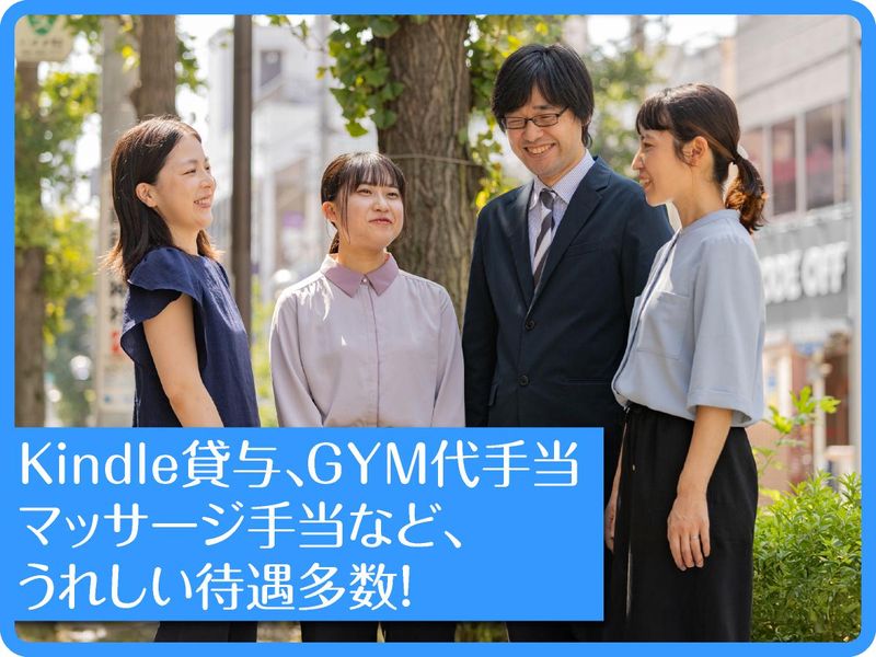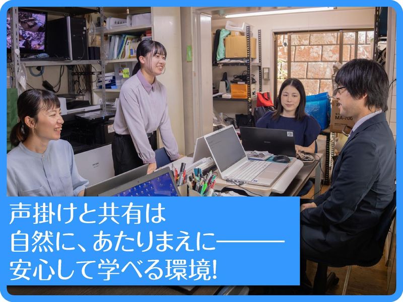 職場環境・雰囲気 | 職場環境 小さな職場ですから、 メンバーそれぞれが互いの得意なことや 苦手なことをわかっています。 自然と声をかけ、助け合える雰囲気がある 穏やかな職場です。 マッサージ手当、ジム手当、 フリードリンク、 奨学金返還支援など 社員想いの制度も たくさんあります! |