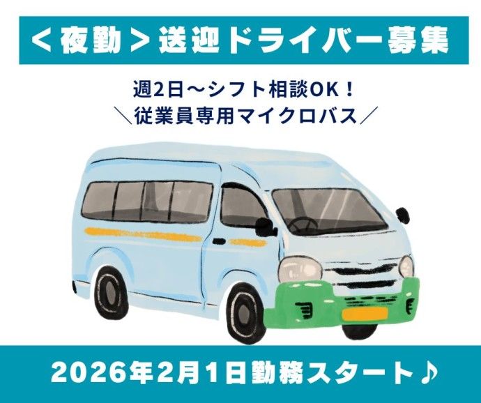 職種/仕事内容 | 仕事内容 \大型自動車2種免許をお持ちの方必見!/ **夜勤専属の送迎スタッフ募集中** ■お仕事内容 マイクロバスで、最寄り駅から勤務先までの従業員の送迎をお願いします! ルートは固定で走行距離も短く、道を覚えればスムーズに運転できます♪ ★送迎時間は片道約10分程 ★決まった時間に駅と現地を往復するシンプル業務 ★夜間帯は交通量も少なく、運転しやすいルート <こんな方にピッタリ!> ・夜の時間を活用してしっかり稼ぎたい方 ・収入の足しにしたい方 ・運転が得意な方 ・ルーティーンワークが好きな方 |