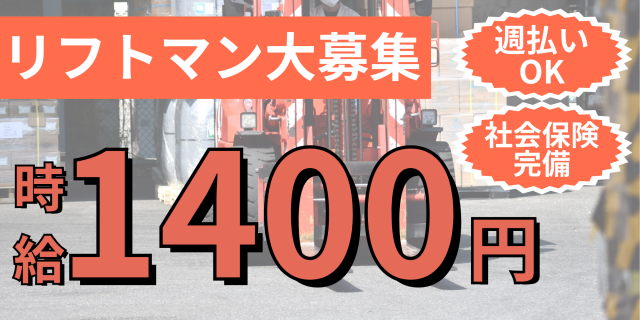 リーチリフト運搬 商品の入出庫作業 高時給1400円 ピッキング作業 20~50代男性活躍中