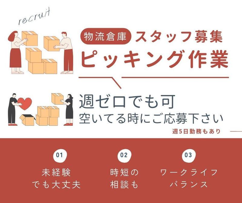 職種/仕事内容 | 仕事内容 _____________ ◣ お仕事内容 ◥ ‾‾‾‾‾‾‾‾‾‾‾‾‾ ▼取り扱う商品 お歳暮向けのギフト商品 └重たいものはほとんどなし! ▼やること ✅商品をレーンに置いていく ✅ハンディで伝票をスキャン ✅方面別に仕分けしていく ✅ボックスに収納 作業はとてもシンプルなので、 初めての方でも初日でスグに活躍可能です◎ \ ここがオススメPOINT / ★お歳暮ギフトの期間限定バイト 自分の都合最優先でOK! ★商品も馴染みがあって覚えやすい♪ ★友達との応募も大歓迎です♪ _____________ ◣ 未経験歓迎 ◥ ‾‾‾‾‾‾‾‾‾‾‾‾‾ *難しい作業はいっさいなし♪ ┗未経験スタートが8割以上! *弊社スタッフも多数活躍中です♪ ┗困ったことは即解決できます! _____________ ◣ WEB面談ok ◥ ‾‾‾‾‾‾‾‾‾‾‾‾‾ 来社不要!スマホやPCで ご自宅から面談に参加OK◎ 来社での面談も大歓迎! ご希望の方法でご参加ください♪ |