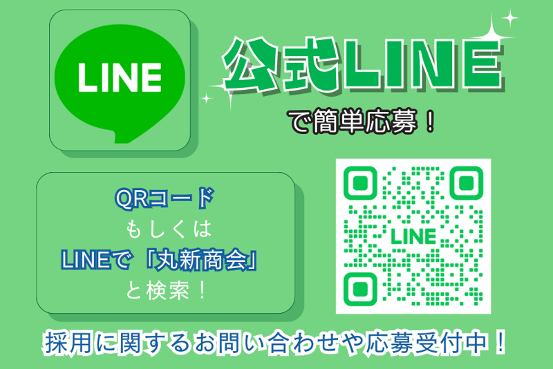 アピールポイント: \丸新商会では1日体験入社を実施中!/ 「仕事現場が気になる」「丸新商会で働いてる人ってどんな人なんだろう?」 そんな不安を抱いている方いませんか? 実際に働いているドライバーさんのトラックに乗る”同乗体験”を実施しています! 入社後のイメージがしやすいほか、気になったことはその場でなんでも質問できるので、入社前の不安もしっかり解消できます! ……………………………………. ご質問やご相談でもOKです。 ご興味がありましたらお気軽にご連絡ください! (在職中の方も、面談可能です!) ---------------------------------------- 【LINEや電話ですぐに応募可能!】 LINE:「丸新商会」で検索!✨もしくは画像をスライドしてQRコードからお問い合わせできます! 電話:045-472-7410