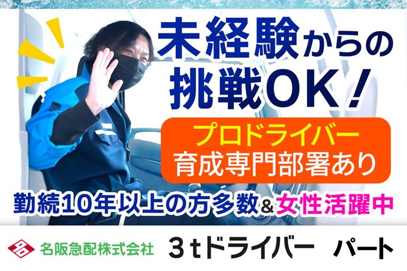 試用期間 | 試用期間あり ■研修期間(実働日換算) :平均して2週間〜20日 :3t車、MT車のご経験をお持ちの方は10日~2週間程度 ■研修期間の条件 :本採用と同じ |