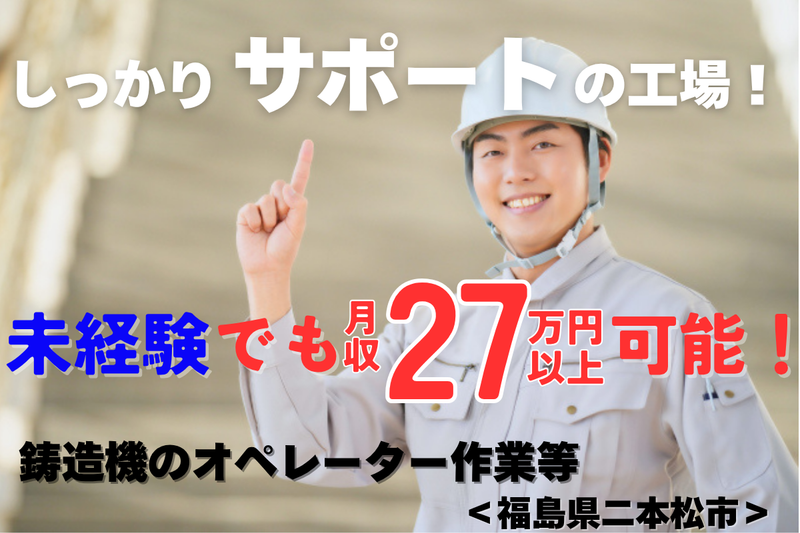 職種/仕事内容 | 仕事内容 《 ここがポイント! 》 ●未経験歓迎、40代スタッフ活躍中 ●月収27万円以上可能 ●土日休みでプライベート抜群 ●正社員登用制度有 《 仕事内容 》 大型車両のエンジンの部品等を 作る工場でのお仕事です! ①砂型造型 砂で製品の型を製造する作業 ②鍛造作業 鍛造機のオペレーター作業 ③仕上作業 グラインダーなどを使用し鉄製品を削る作業 ④機械加工 旋盤やマシニングセンタを用いた部品加工作業 作業内容は①~④と多岐にわたります。 馴染みのない作業ですが 先輩スタッフがしっかりサポートしますので 安心してスタートできます! 《 最初は先輩がサポート 》 現在、未経験からスタートした 40代のスタッフも活躍しています! 教育がしっかりしているので 工場ワークが初めての方も 安心してお仕事ができます♪ 現在働いているスタッフの 男女比は男性8:女性2です。 《 正社員にステップアップも可能! 》 応募から入社までしっかりサポートします! 異業種から正社員で 活躍されてた方も多数活躍中! 正社員へステップアップも可能です! 《 土日休み!毎週末が楽しみに! 》 ◇いつも2連休! ◇先の予定も立てやすい ◇不定期休みと違って安定した 私生活の予定が立てられる! 毎週末が楽しみになる求人です! |