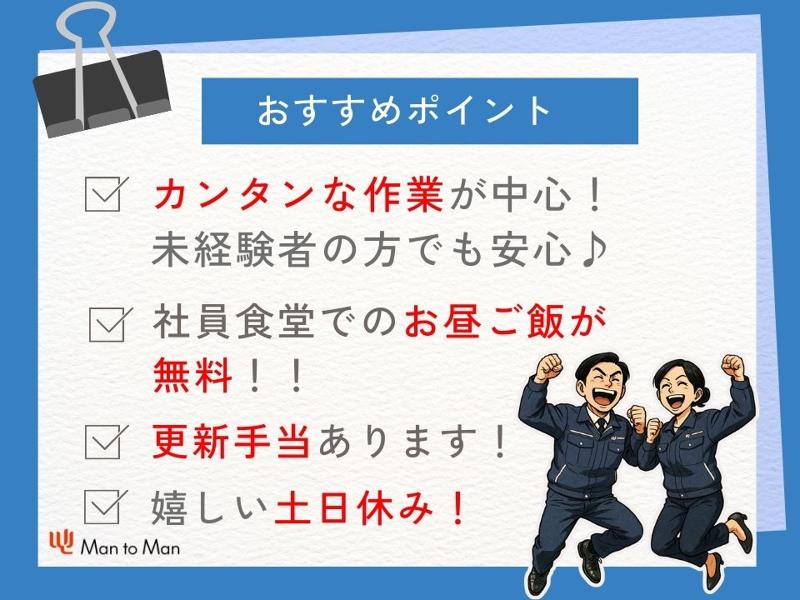 アピールポイント: 【この求人だけの嬉しい特典】①皆勤手当あり ②更新手当あり ③昼食が無料