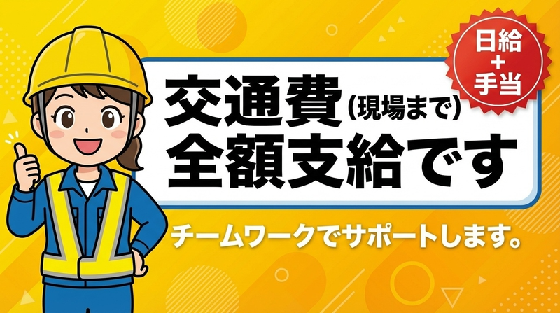 ✅日払いは現金手渡し✅全額100%支給✅さらに交通費も!