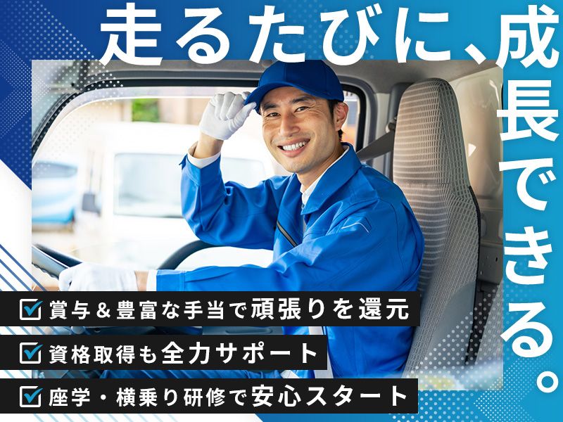 アピールポイント \新生活のスタートを応援/ 地方から転居が必要な場合、 引っ越し先探しをサポートします! \豊富な車種をご用意!!/ 多種多様な車種を保有しているので あなたにぴったりの1台で働けます〇 \嬉しいプレゼント!!/ 誕生日には粗品(ハンカチ・手袋など)を プレゼント! ▽ここも魅力♪ 1|選べる「収入」と「休日」✨ 当社は日給月給制を採用しています。 例えば7tドライバーの場合… ●稼ぎたい派(25日出勤) ⇒月給30万円~35万円 ●休み重視派(22日出勤) ⇒月給26万4,000円~ あなたの理想の働き方が叶います。 2|未経験からプロのドライバーへ✨ 入社後は1~2日の座学研修に加え、 3日目の横乗り研修で丁寧に指導。 資格取得支援制度(規定あり)で 大型免許や玉掛け、フォークリフト などのスキルアップも会社が負担! 未経験から一生モノの資格をGET〇 3|長く働ける厚待遇✨ 賞与年2回に加え、業績により 決算賞与も支給しています。 無事故手当や誕生日プレゼント、 地方からの転居サポートなど、 社員を大切にする制度が満載です。