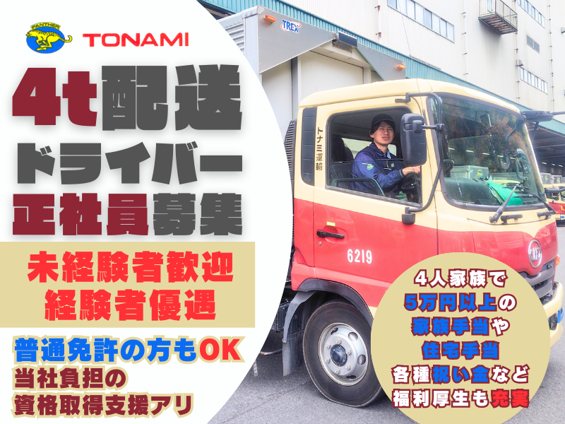職種/仕事内容 | 仕事内容 家族がいる方には 嬉しい制度が多数アリ! 40代からの未経験スタートでも 安心できる体制&給与です◎ ⟡┅┅┅━─━┅┄ ┄┅━─━┅┅┅⟡ 物流センターに届いた商品を お客様(法人)への ルート配送業務をお願いいたします ⟡┅┅┅━─━┅┄ ┄┅━─━┅┅┅⟡ •──• 「配送先」 •──• 埼玉県南部の 近距離配送です。 •──• 「勤 務」 •──• 日勤×年間休日117日以上 ▶月8日~10日休み ▶連休も可能! ▶長期連休有! プライベートとの両立◎ •──• 「配送物」 •──• 運ぶ物は ▶文具 ▶化粧品ケース等の日用品 など様々です。 積み下ろしは フォークリフトを使用して 運べるものもあります♪ トナミ運輸のご紹介 ┗┈┈┈┈┈┈┈┈┈➤ 当社は創業は昭和18年、 現在81年目の企業となるトナミ運輸は 全国に143箇所の各種拠点を持つ 物流ネットワークを担う企業の一つです。 グループ売上は年商1400億、 安定した地盤を持っている要因は 小売店から大手メーカーまで 様々な企業間配送のエキスパートとして 続けてきたことです。 長期勤務者が多数◎ ┗┈┈┈┈┈┈┈┈┈➤ ①実は家族がいる社員の 家族手当が充実しています。 <例えば…Aさん(42才)の場合> ✤ 妻1人/子ども2人(扶養3人) ✤ アパート住まい ⏩家族手当:月額▶52,000円 <例えば…Bさん(50才)の場合> ✤ 妻1人(扶養なし) ✤ マンション住まい ⏩家族手当:月額▶30,000円 その他、住宅手当など 給与+αの手当が充実! ②人生のいろいろな場面に 合わせた手当や支援が 充実しています! <例えば…Cさんの場合> 【入社】39才 平成19年以前の免許のため 経験はないがドライバーとして 正社員で入社 ▼ 【子どもの出産・進学】43才 ⏩祝い金を取得 ⏩ランドセル・図書カードも取得 ▼ 【親の介護】54才 ⏩介護支援制度を取得 ▼ 【無事故20年】59才 ⏩ハワイ旅行(妻と2名分) ③毎年昇給・賞与アリ! 毎年の昇給があるので 長期働く方ほど給与が上がります。 賞与も年2回あり 今年のドライバー平均賞与額は 夏/36万円 冬/39万円 でした! …など 長く働いてくれる社員にとって 嬉しい制度や体制がありますよ! ▶40代・50代からの 正社員として入社する方も 多数在籍中! ▶60才定年後も再雇用制度で 継続して働く社員も多数います |