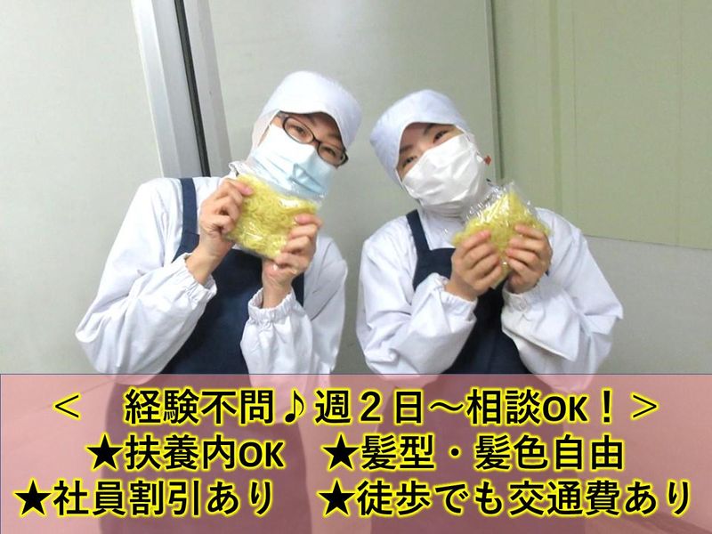 職種/仕事内容 | 仕事内容 *取引先は大手なので安定しています* 長く働いているスタッフ多数(・v・)人('v') 働きやすさ、居心地の良さに自信アリ! …社長以外に役職がなく、組織的な上下関係がありません♪ みんな気兼ねなく自分の業務に取り組んでいるので、 無理なく働けるのが「居心地の良さ」に秘訣♪ ※役職はありませんが、長期で働いている方や、できる事が増えた方は しっかり「昇給」しています!(時給1550円の方もいらっしゃいます♪) 。・―カンタンなコツコツお仕事―・。 レーンに流れてくる麺を手で触って検品したり、袋詰めされた商品を目視check!やきそば部門やラーメン部門でのお仕事。 ※製造は機械が行うのでラクラク('ω') *機械の操作方法は丁寧に教えます♪ *コツコツ作業が得意な方必見です! ╲主婦・フリーター多数活躍中╱ 扶養内での勤務もOKです⛅ 髪型・髪色自由✨ 嬉しい!社員割引あり(規定)✋ ※希望の時間帯、勤務曜日などご相談下さい!アナタの希望の収入に合わせた働き方を最大限考慮します! (フルタイム・レギュラーワーク(週5日勤務)できる方は大歓迎です!) |