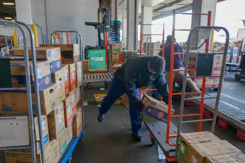 冷蔵倉庫内での仕分けのお仕事です。幅広い年齢層が活躍されています。