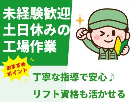 職種/仕事内容 | 仕事内容 \ここがポイント/ ★ 土日休みでプライベートも充実! ★ 未経験歓迎!シンプル作業で安心スタート ★ 20代~50代の男性が活躍中! *・。・。*・。・。*・。・。* <仕事内容> \★工場内での部品の仕分け・運搬スタッフ募集★/ 工場内で部品の仕分けや出荷準備、運搬作業を担当していただきます。 ★ ハンドリフトで部品を現場まで運搬 ★ リフト免許をお持ちの方はフォークリフトでの運搬もお任せ ★ 製品にラベルを巻く簡単な作業や生産管理 未経験でも丁寧な指導があるので安心!フォークリフト免許があれば、さらに幅広い業務を担当できます。 ★20代~50代の男性が多数活躍中!フォークリフト免許があれば尚可★ ※就業後、上記業務から変更はありません *・。・。*・。・。*・。・。* |