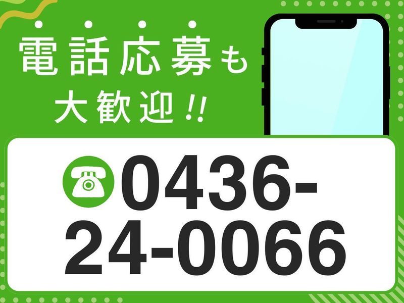 職種/仕事内容 | 仕事内容 ・*・*・ココがポイント・*・*・ 〇扶養内勤務&WワークOK! 〇週3日~OK! 〇最大時給1450円! 〇クリーニング工場から、加盟店へクリーニング品を集配するお仕事です! 〇ノルマや営業はまったくありません 〇ピアス・ネイル自由! 〇髪型・髪色・タトゥー自由! 〇嬉しいクリーニング割引あり! 気になった方は下記電話番号に 気軽にご連絡ください! ❖TEL:0436-24-0066❖ ・*・*・*・*・*・*・*・*・ <具体的な業務は> ・クリーニング品の集荷 ・仕上げた品物の包装作業 ・包装した品物の出荷準備 など クリーニングの知識が身に付くので、 仕事だけでなくプライベートでも 活かすことができますよ〇 - カンタンな作業から始めていき、 慣れてきたら徐々にお任せします! 集配車は「キャラバン」や「ハイエース」などのオートマワゴン車です 運転が好きな方、キビキビ動くのが得意の方に向いています 難しい作業や専門知識が 必要な作業はありませんので ご安心ください! 一つひとつの作業は、慣れるまで 先輩スタッフがしっかりサポート!! 焦らず、着実にスキルを 身に付けていける環境です! - |