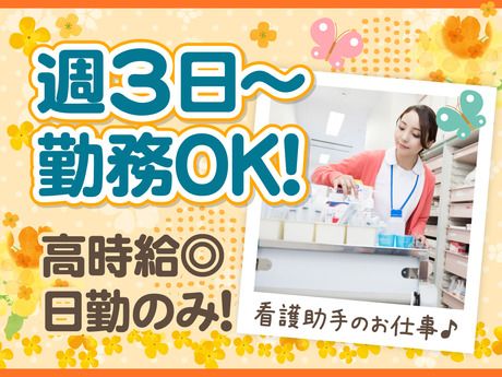 職種/仕事内容 | 仕事内容 ☆未経験から始めるチャンス! ☆経験・知識必要なし! ☆久しぶりの仕事復帰も◎ 病院内のサポート業務◎ *シーツ交換 *食事の配膳・下膳 *搬送業務 *物品補充 をお願いします。 ☆カンタン作業がメインで覚えやすい! ☆教育体制整っています! ☆医療の知識や資格は必要ありません! 経験や知識も必要ありません◎ 未経験から医療業界で働くチャンスです♪ \扶養内勤務もOK/ 16時あがりと少し早めなので 家事と両立する主婦さんが活躍中♪ 平日の週3日~曜日も相談OK! 小さいお子様のいるママさんも 扶養内でムリなく働いています。 <YH_030> <YH_L> |
