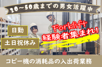 【土日祝休×日勤】◆フォークリフトでの運搬作業◆経験者大歓迎!!集まれフォークマン!!!