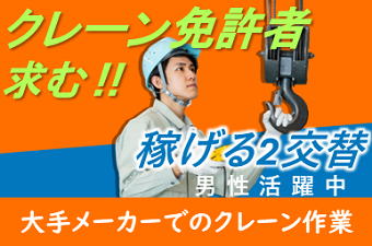 ≪クレーン作業のお仕事≫時給1200円/2交替◇清原工業団地内、大手企業でのお仕事です◎研修期間もあるので、未経験者でも安心♪