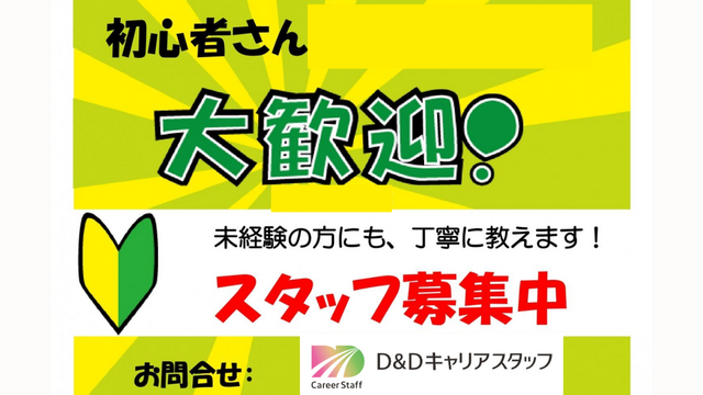 選考プロセス | 応募後のプロセス <選考の流れ:人柄重視の採用です> STEP1 下記応募フォーム or お電話にてご応募 STEP2 面談日時など詳細をお話いたします(WEB面談対応) 面談当日は30分〜1時間程度を予定しております かしこまる必要はないので気軽にご連絡ください STEP3 ご希望の条件に合わせて求人をご紹介 職場見学なども可能です! STEP4 ご契約!勤務開始後も、手厚くサポート致します ※面談日や稼働日はご相談に応じます。 在職中の方のご応募もお待ちしています! ※株式会社D&Dキャリアスタッフで応募受付 ※本求人は職業紹介事業者が雇用主の依頼を受け行う職業紹介求人です。 応募方法 ここまでお読みいただき、ありがとうございます。 「応募フォーム」より必要事項をご記入の上、送信してください。 お電話でも受け付けております。 ご質問やお問合せも大歓迎!お気軽にどうぞ。 *TEL:0343327207 採用担当 |
