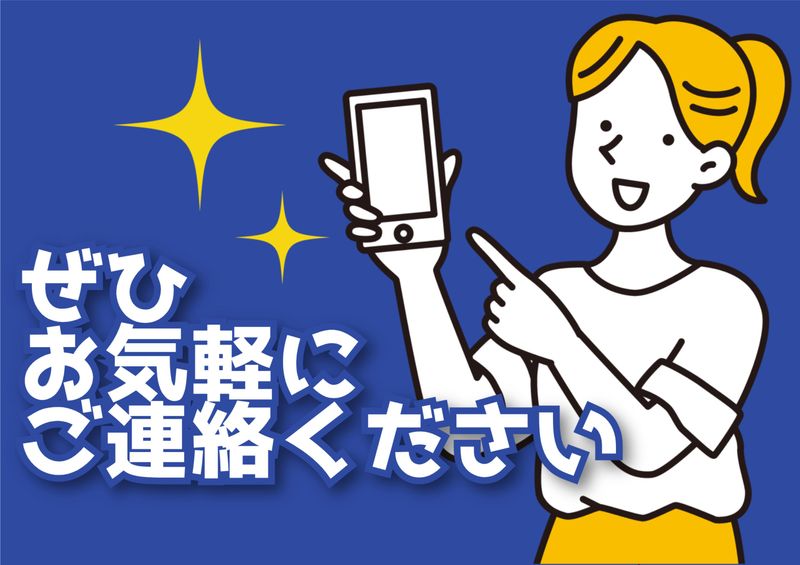 選考プロセス | 選考プロセス WEBまたは電話にてご応募ください。 WEBの場合は応募内容確認後に こちらからご連絡いたします。 電話の場合は「求人情報を見ました」と お伝えください。質問のみもOKです。 【選考の流れ】 1.応募 2.面接 3.入社 現在、他のお仕事をしている方も ぜひご応募ください。面接日や 入社時期はご相談に応じます。 |