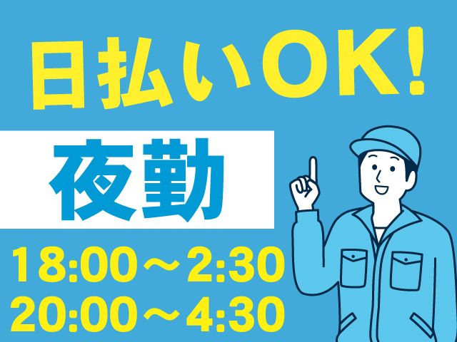 夜勤|もくもく作業|日払い週払いOK|週休2日シフト制|WEB面接OK|仕分け|シフト制|未経験OK