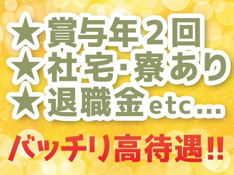 待遇・福利厚生 | 【保険制度】 雇用保険、労災保険、健康保険、厚生年金 【福利厚生】 待遇・福利厚生 【福利厚生】 ・交通費実費支給 ・社会保険完備 ・制服貸与 ・昇給年1回 ・賞与年2回 ・資格取得支援制度あり ・退職金制度あり ・社宅・寮完備(単身:1R、家族:2K) ・車通勤可(駐車場完備) ・年間休日100日 ・勤務延長あり |